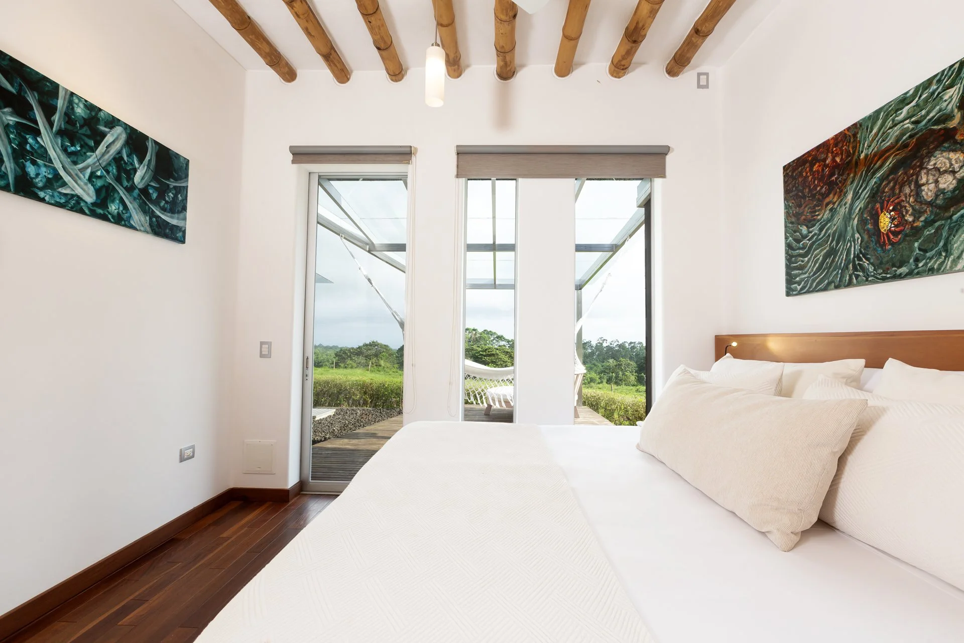 The two different villas on property share modern lux interiors with ceiling fans, safe boxes, wifi and bluetooth stereos. Rooms have either two twins, a queen or a king-size bed and maximum exploring with minimal packing is accommodated with individual beach towels, rubber boots, rain jackets, water bottles, and flashlights available for use.
